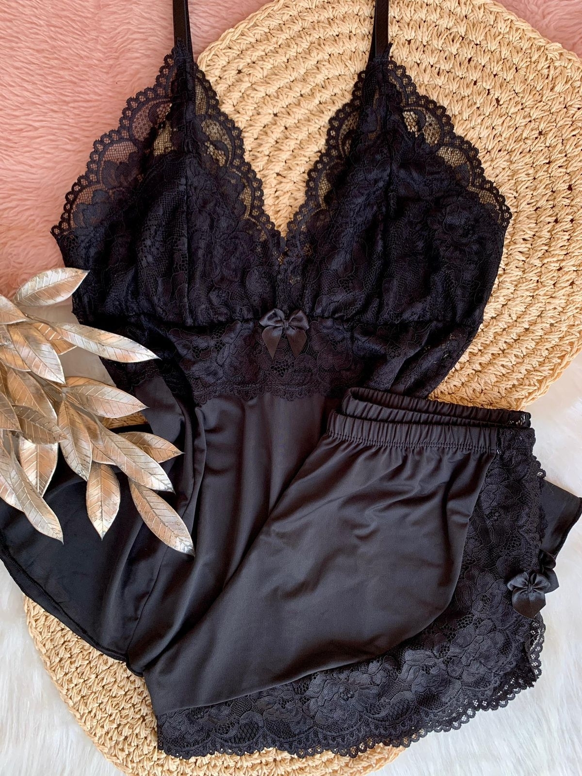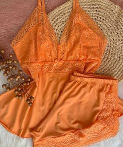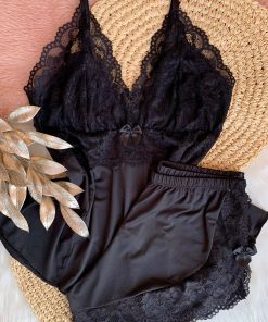 Confeccionado em renda e malha fria.