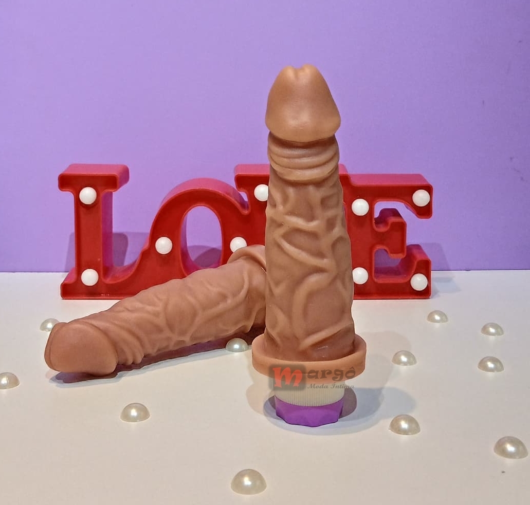 Prótese com motor desenvolvida em material polivinílico atóxico flexível. Penetração confortável, semelhante ao natural e com saliências de estimulações adicionais.