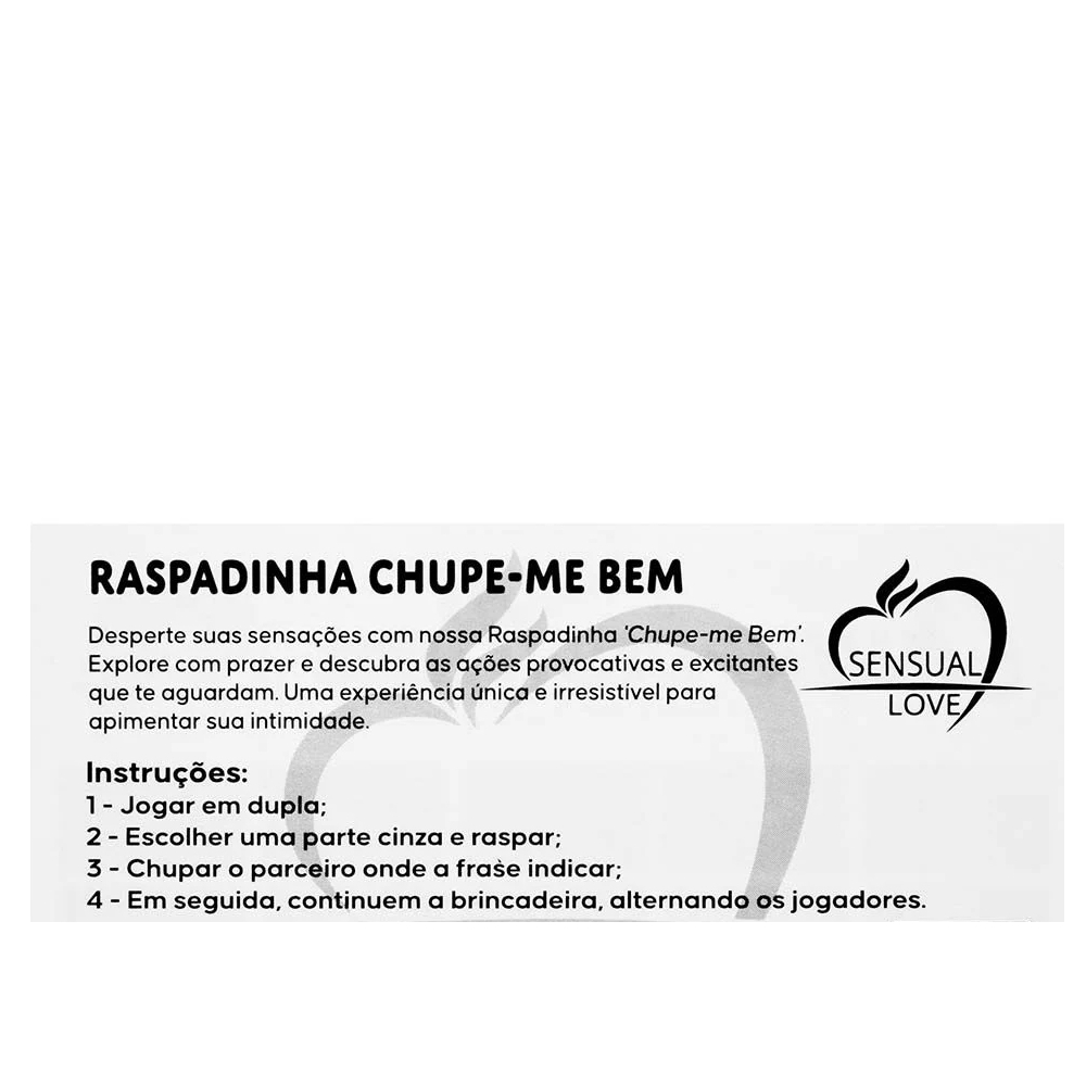 Adicione um toque de diversão e excitação aos seus momentos íntimos com a Raspadinha Chupe-me Bem.