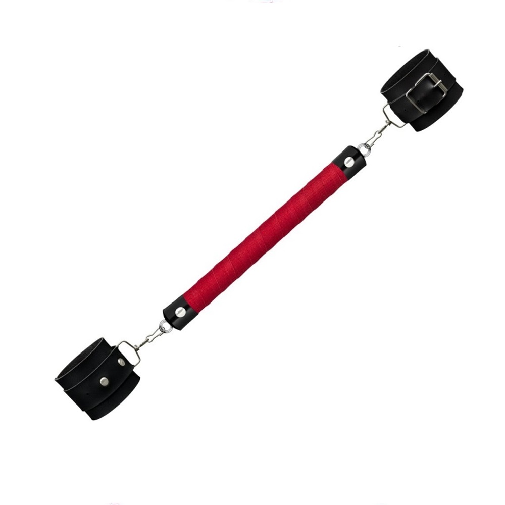 Separador de braços confeccionado artesanalmente em madeira com revestimento emborrachado na cor vermelha.